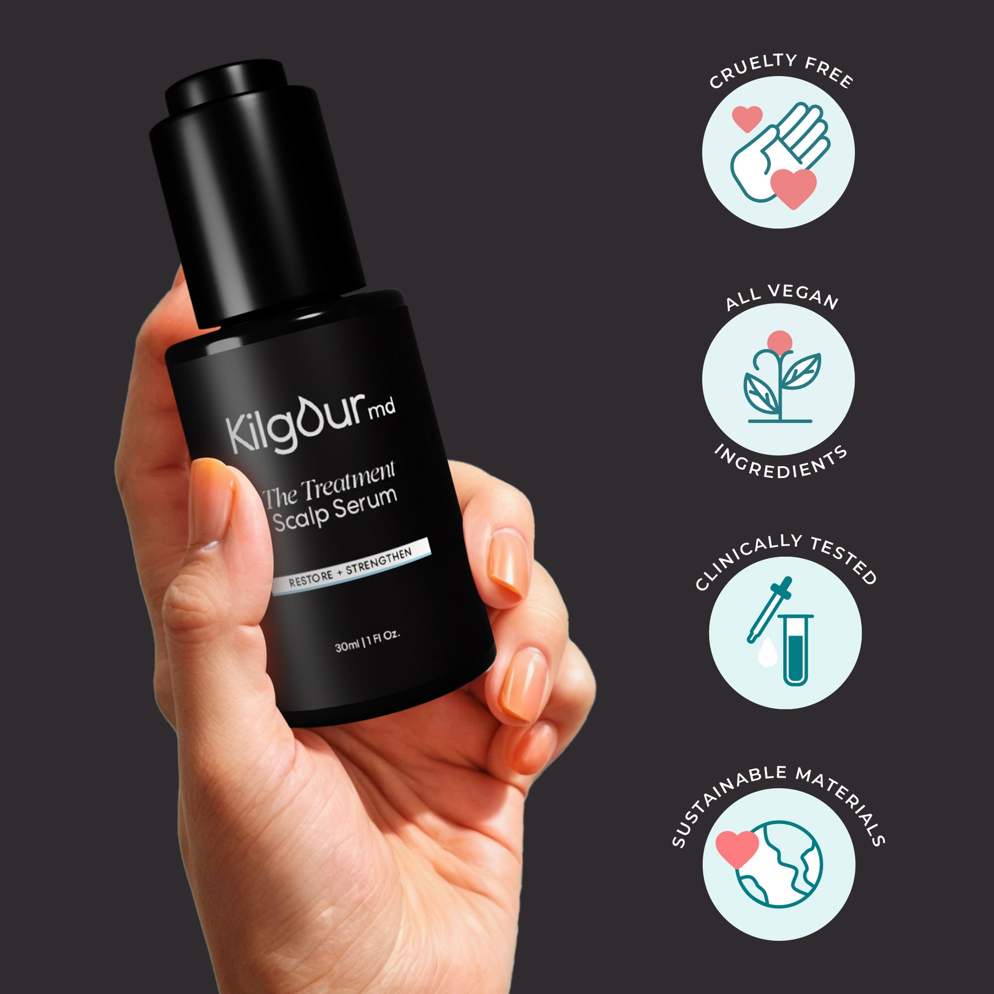 KilgourMD offers the best products for hair treatment. These work by nourishing the scalp with a rich blend of phytoactives and adaptogens. It penetrates deep into the hair follicles to strengthen them from the roots, thereby reducing hair fall and promoting thicker, healthier hair growth.